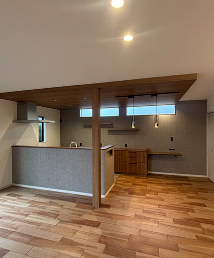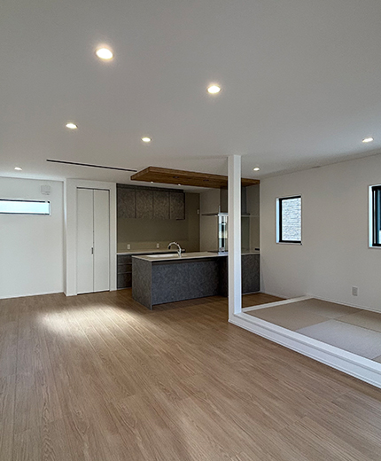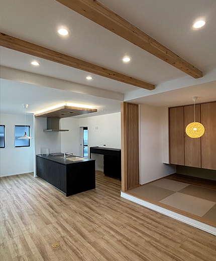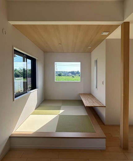 小上がりスペースが落ち着くモダン平屋