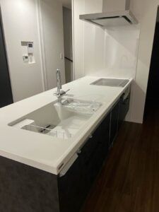 樹脂で作成された人工大理石を天板として採用しており、加工の点やコストパフォーマンスに