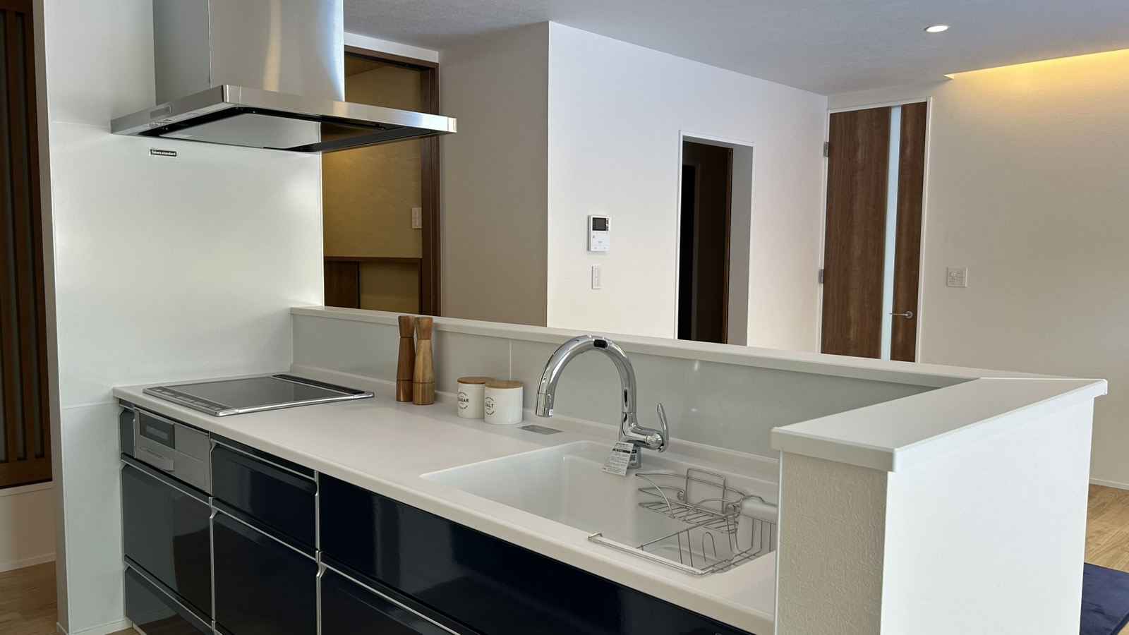 浄水器を内蔵した水栓を標準採用しており扉柄と負わせて一体感のある雰囲気や