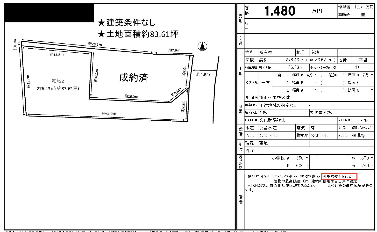 「外壁後退1.5m以上」