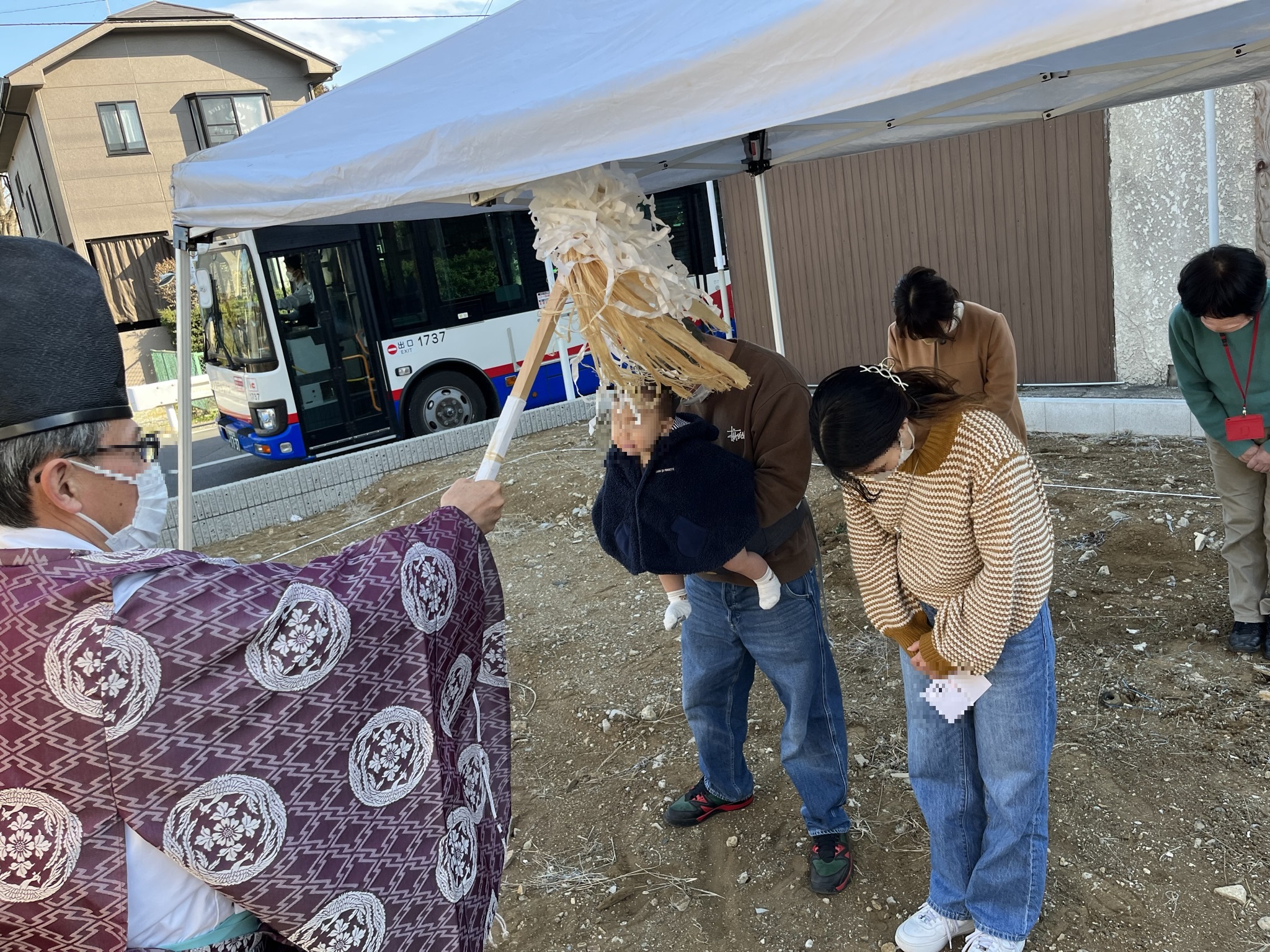 ④祝詞奏上(のりとそうじょう)・・・工事の安全と家の繁栄を祈る儀式