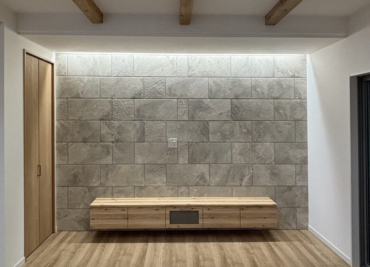 間接照明は照明の明るさを利用して、その空間の演出のみではなく、光の当たる壁を主張させることもできます。