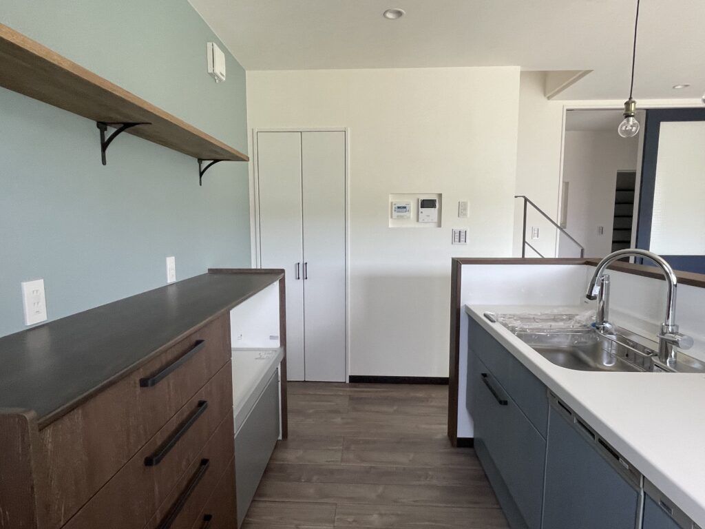 キッチンと同系色のブルーをご採用いただいております。