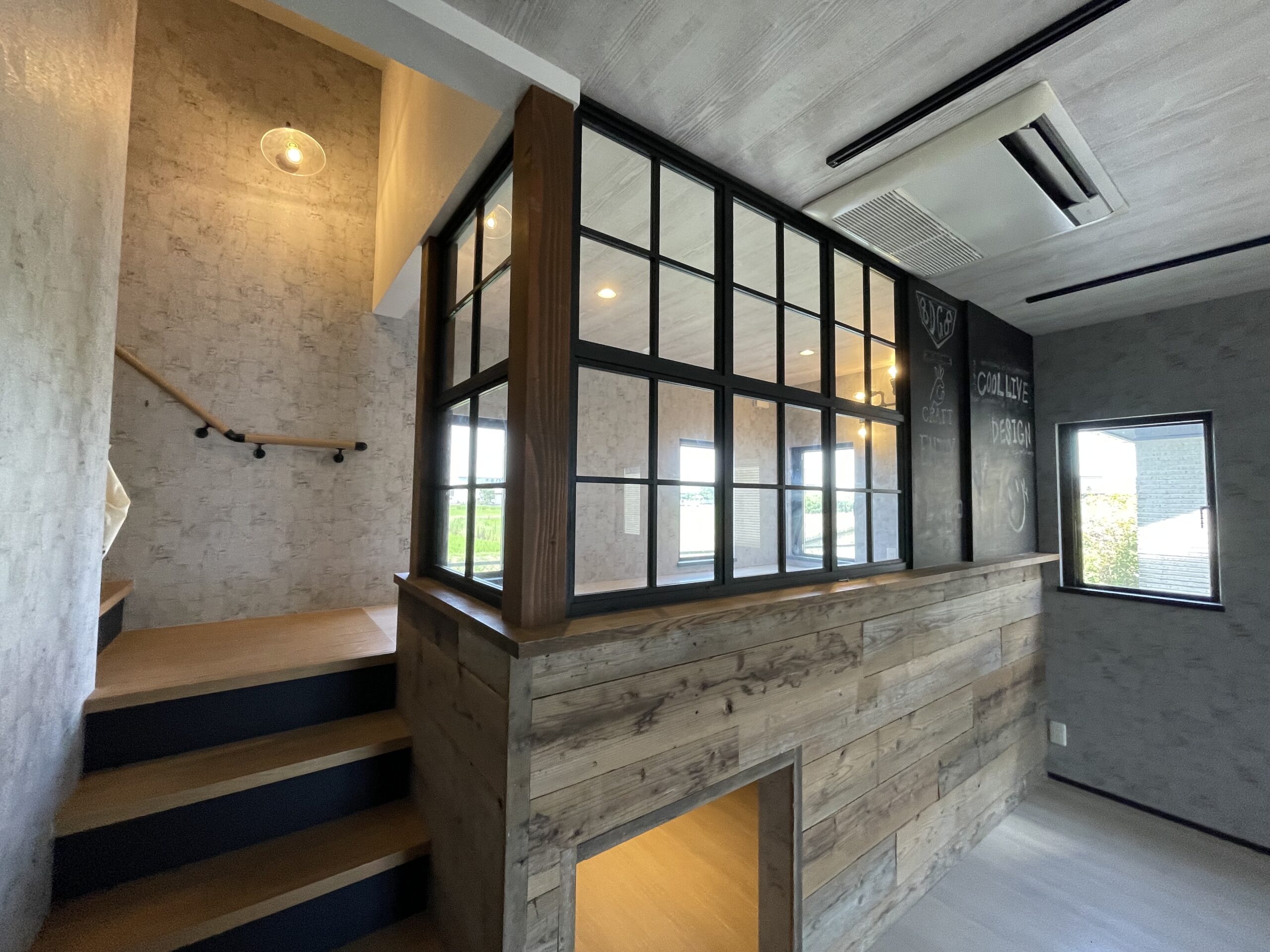 当社、愛知ショールームのキッズスペースの壁にアイアンの間仕切り壁を採用