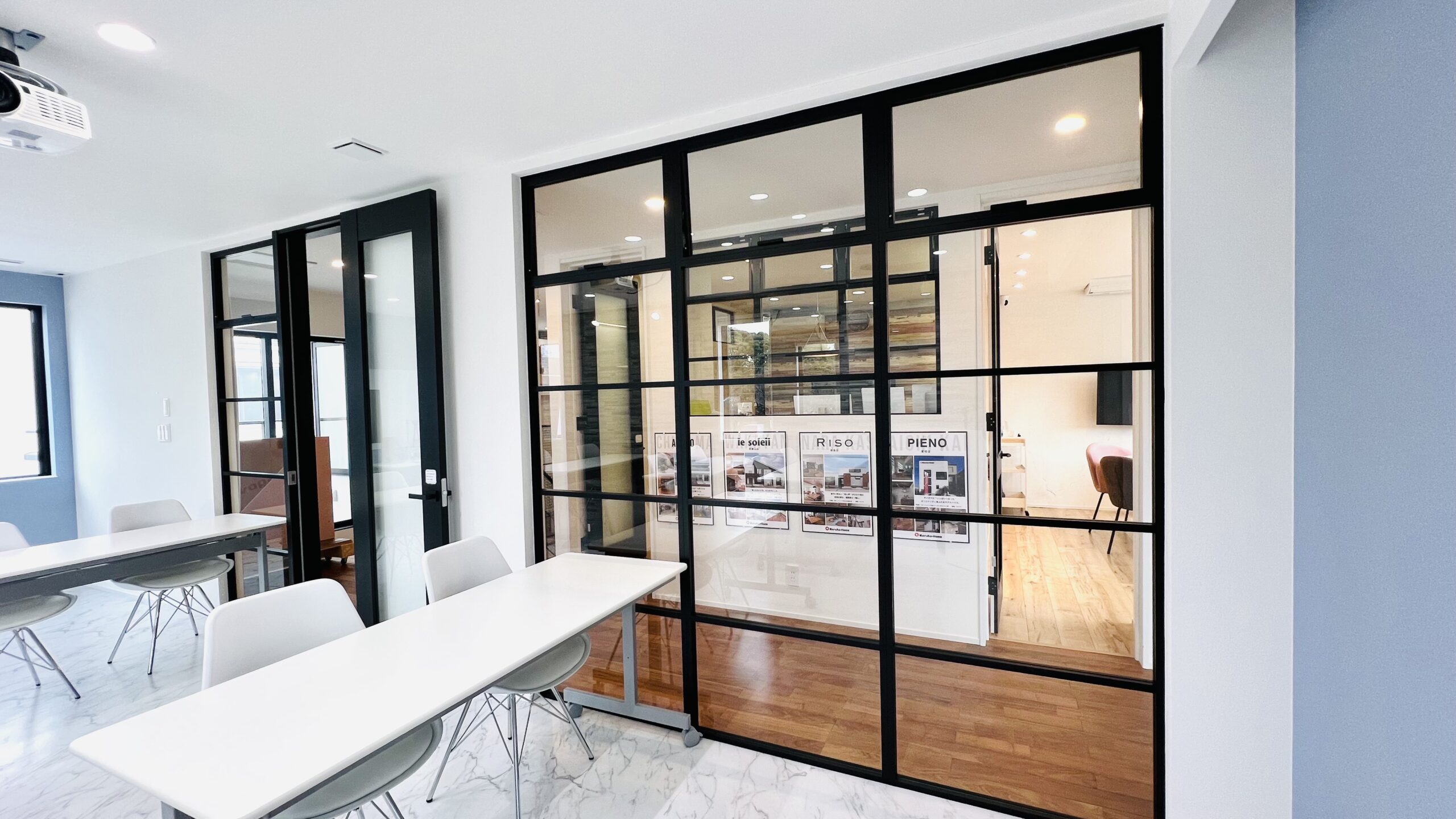 千葉ショールームのセミナールームと廊下の間に一部に取り入れています。