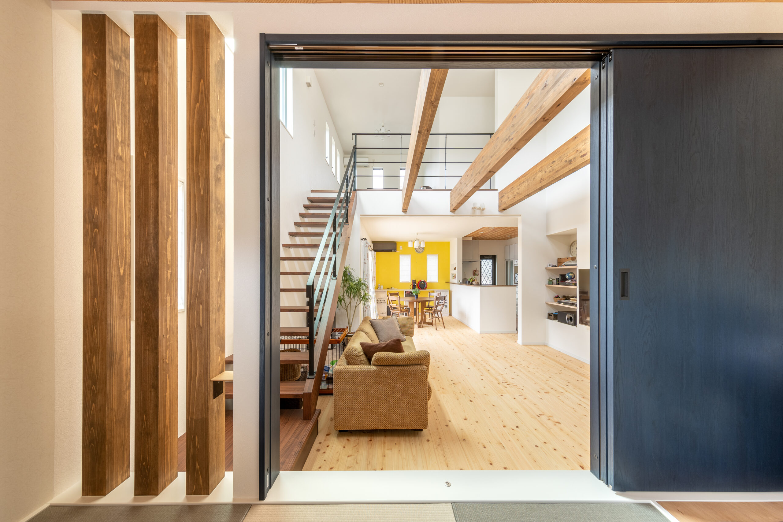毎日お仕事から帰ってくると、リビングに入ってすぐに目に飛び込んでくるこのイエローカラーが、疲れを吹き飛ばしてくれそうですね!!