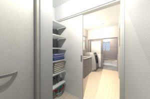 1階に家族の衣類や肌着を収納できるスペース。2階に大型収納のWCL(ウォークインクローゼット)を設置するのはいまや常識と言っていいほど皆様のプランニングには登場しますが、