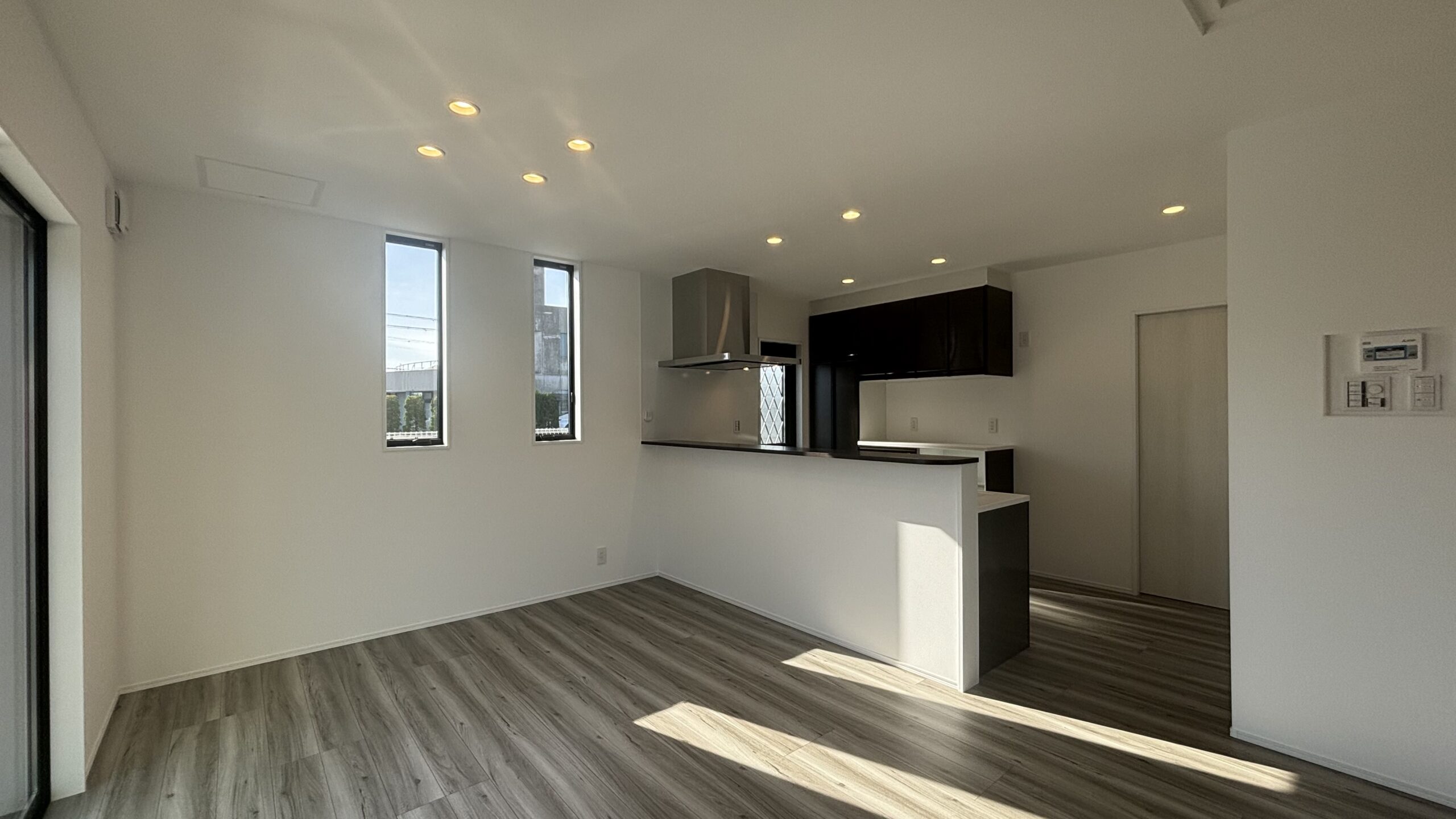 白のクロスに木目調の床が魅力的なLDKは、