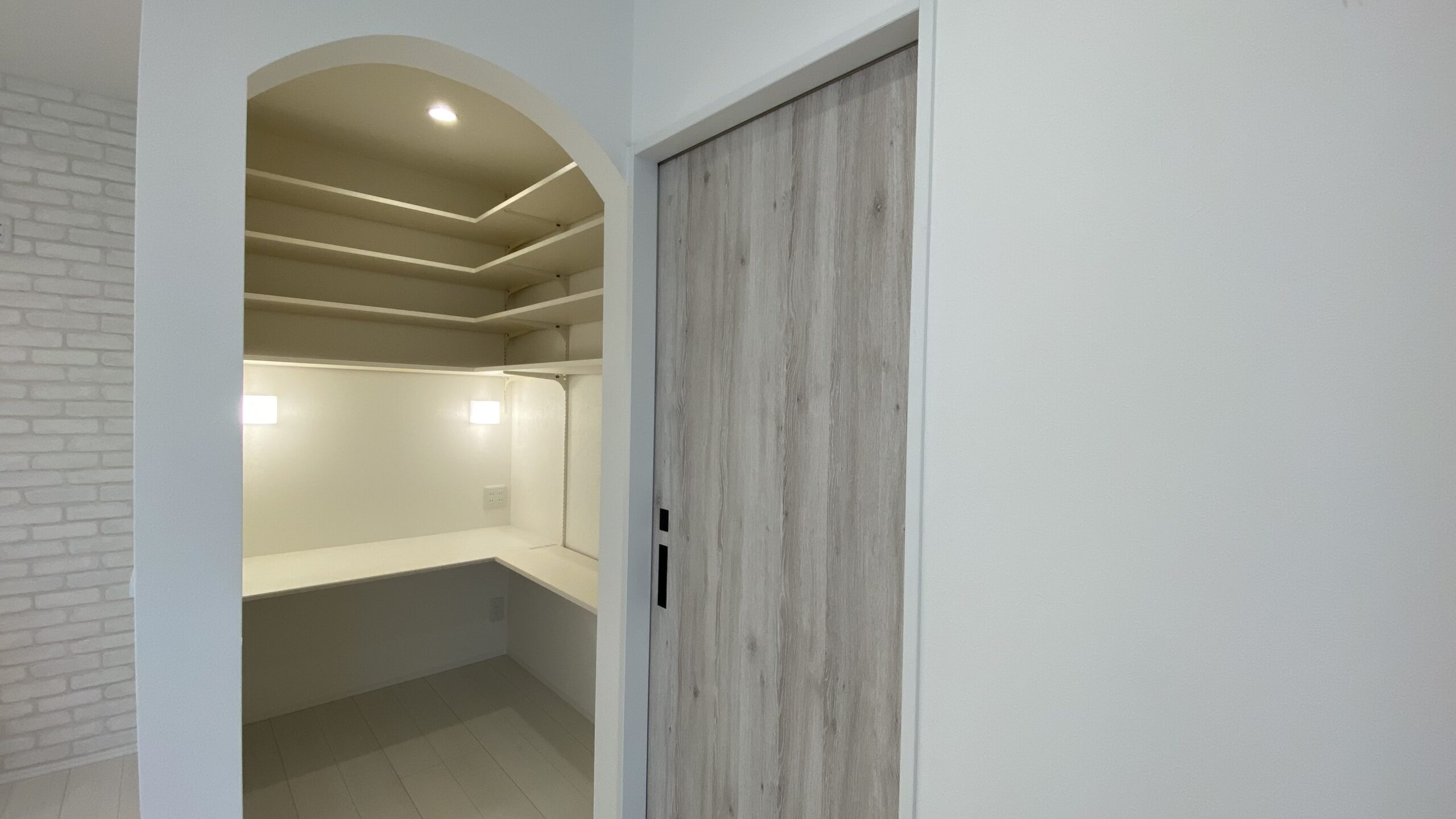 また、R垂れ壁にも先程のように滑らかに丸くなっているタイプもあれば、こちらの様にアーチの始まりが角ばったデザインもお選びいただけます!!