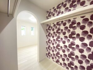 実はR形状に施工するのはかなり難しく、施工するにはかなりの手間と技術が必要なので、建築において丸やアーチ状と言った形状の施工は大工さん&クロス屋さん含め職人さんも気合いが入ります。