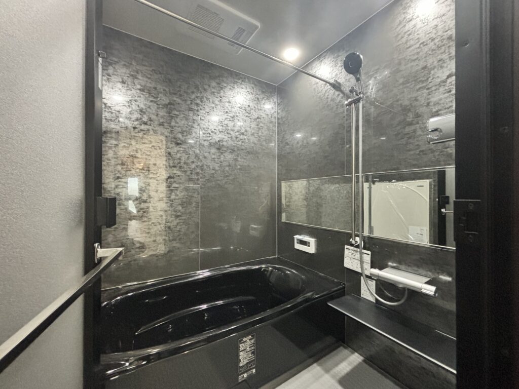 黒で統一された浴室は高級感や重厚感を演出することができ