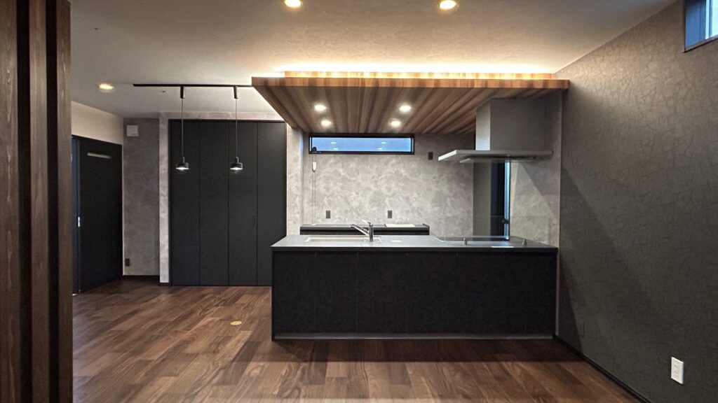 木目でもかなり暗めの色にすることでより大人っぽい空間となっております。