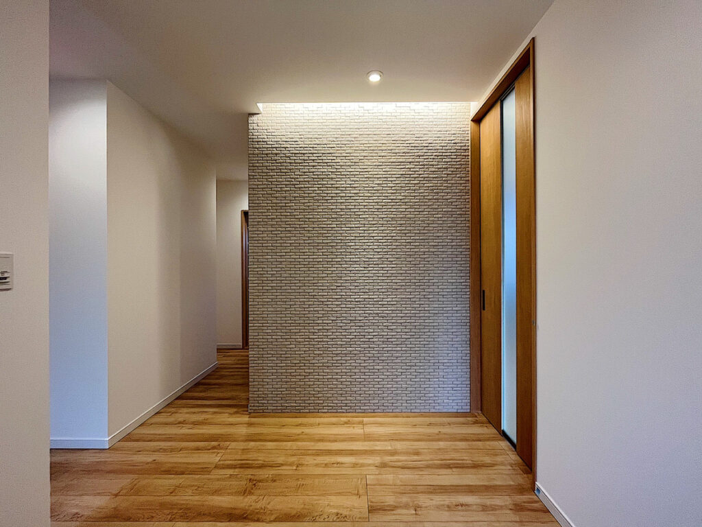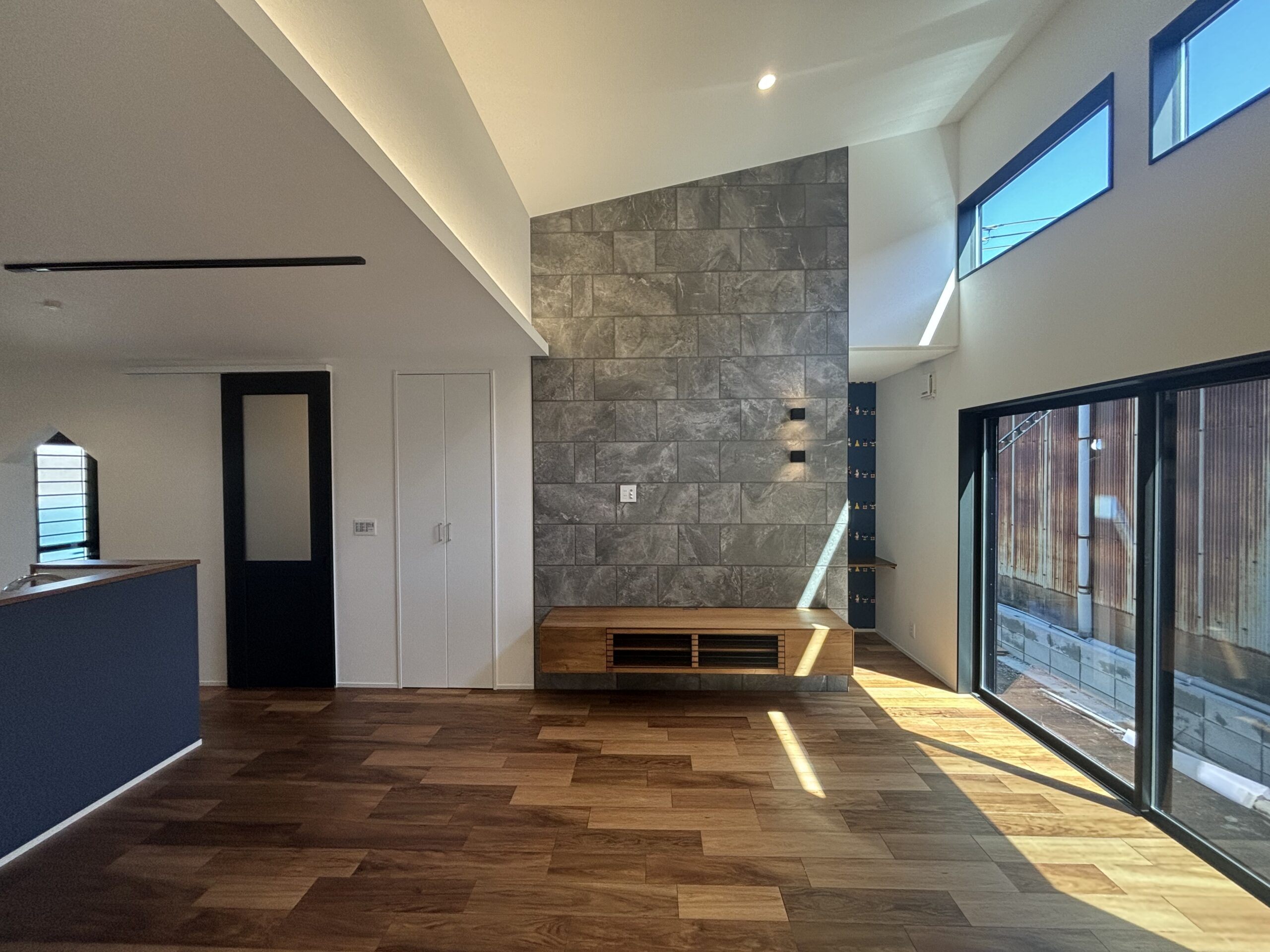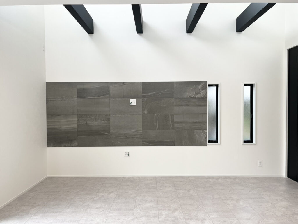 こちらはリビングの窓の高さに合わせて、テレビをつける壁のみ施工をしております。