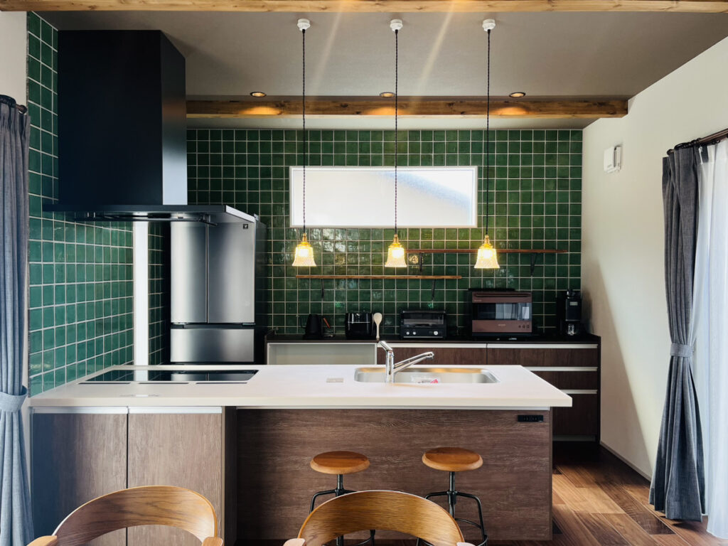 タイルは湿度にも強いため、洗面所や浴室、キッチンなど湿度の高いところに貼っても