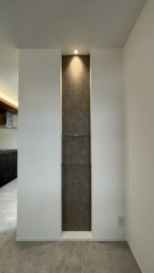 ニッチ上にダウンライトを入れることで、アクセントクロスも強調され奥行を演出しております。