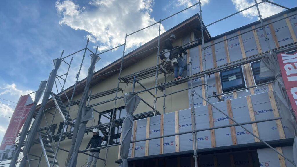 透湿防水シート施工後、検査にも合格しサイディング工事がスタートしました!
