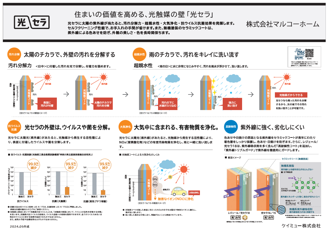 その中でもケイミュー株式会社から出ております光セラの外壁は光触媒を使い晴れた日に汚れを浮き出させ