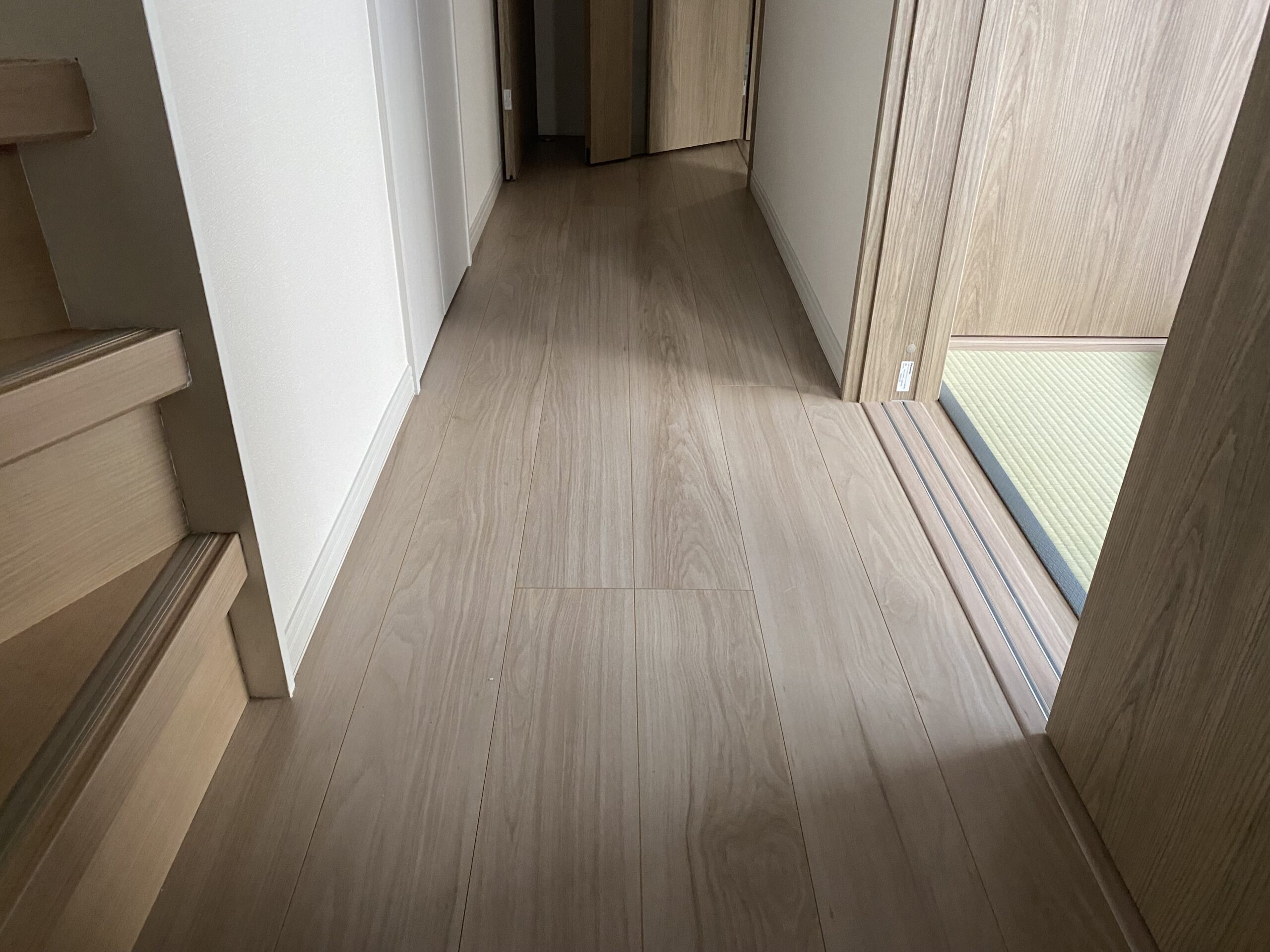 玄関入ってすぐにある和室も同様に同じ高さの段差がありましたが、こちらも廊下からフラットに床面が仕上がるように床の高さを調整しています。