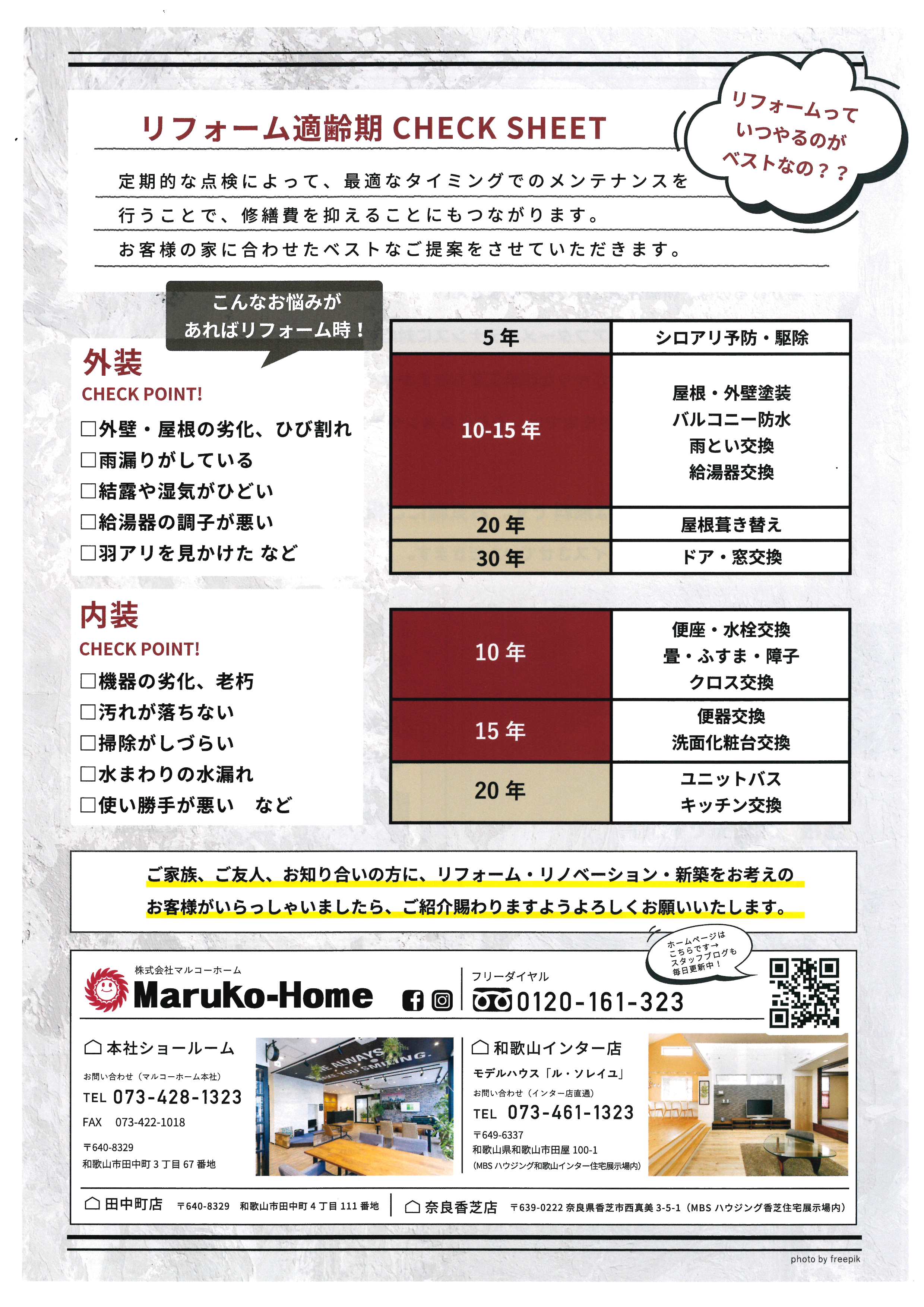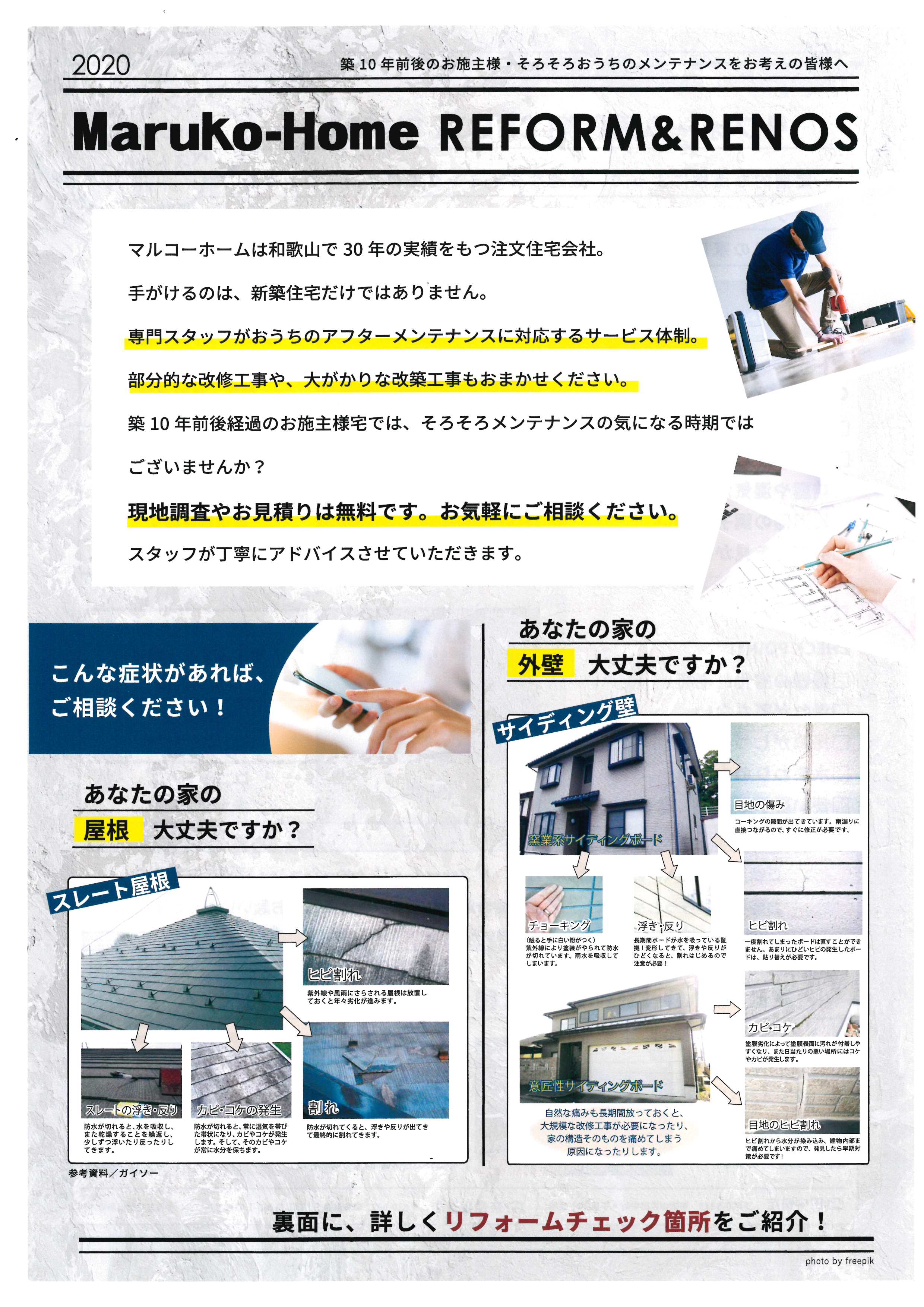 マルコーホームでは、現場調査、見積りを無料でさせて頂きますので是非一度ご検討してみてはいかかでしょうか。