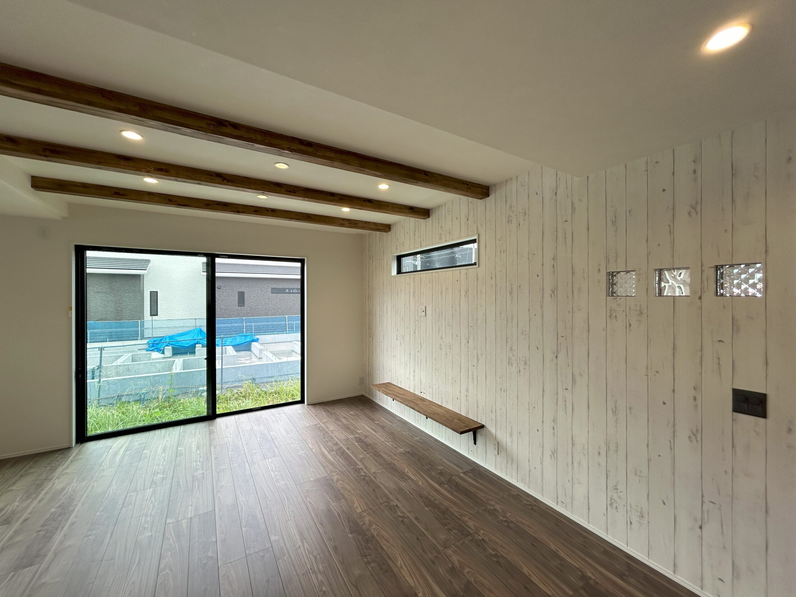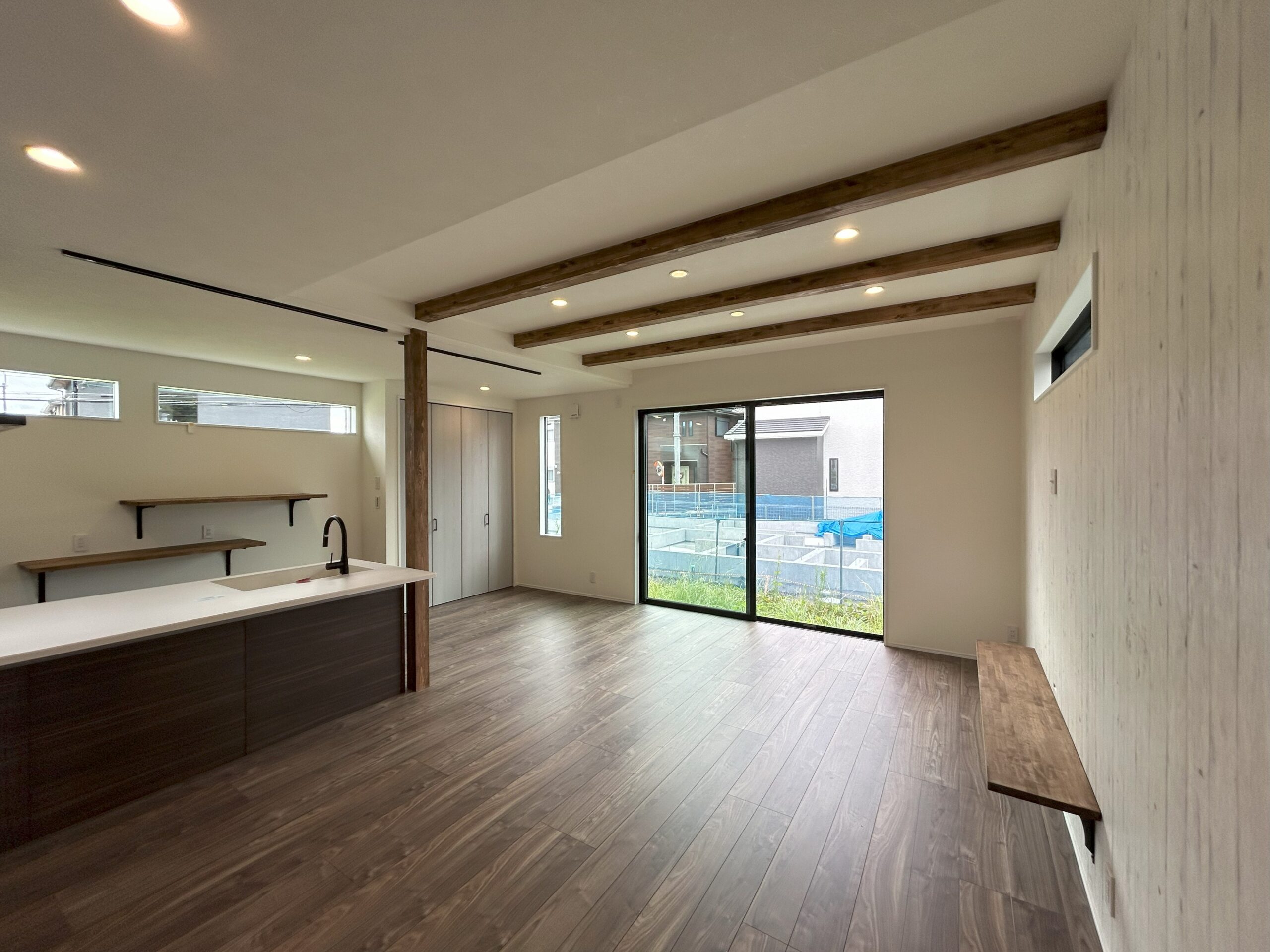 リビングに面する大きな窓は、横幅2m56cm・高さ2m20cmと大開口になりますので明るさと解放感溢れるような計画となっております。