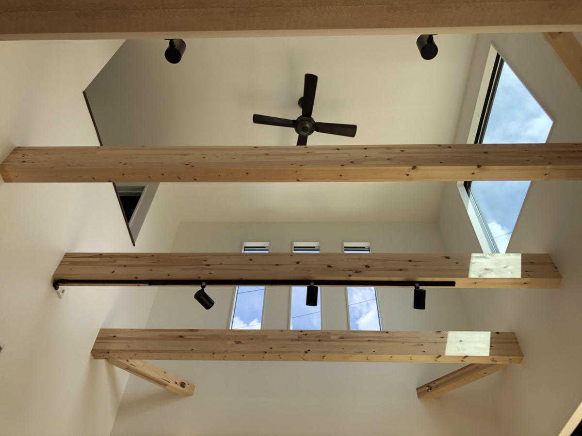 梁を見せる事で天井が高くなり