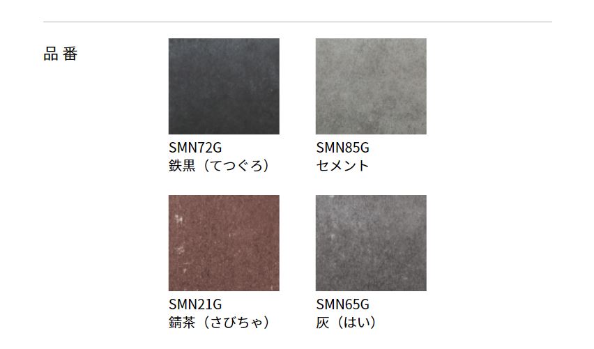 4種類あり、最近グレーの色味のものを好む方が最近多くいらっしゃいますのでセメントや灰といったものはそういった方の好みにも合うのではないのでしょうか?