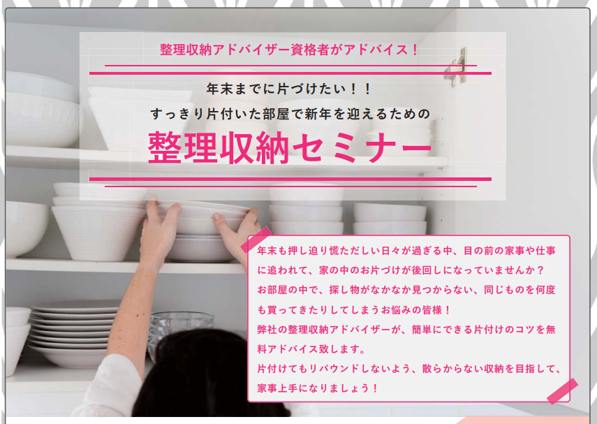 さてマルコーホームでは年末に向け「整理・収納セミナー」を企画しております!