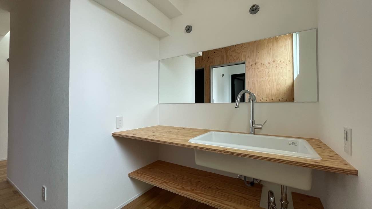 完全造作で設計させて頂いており、合板のカウンターにTOTOの病院用流し
