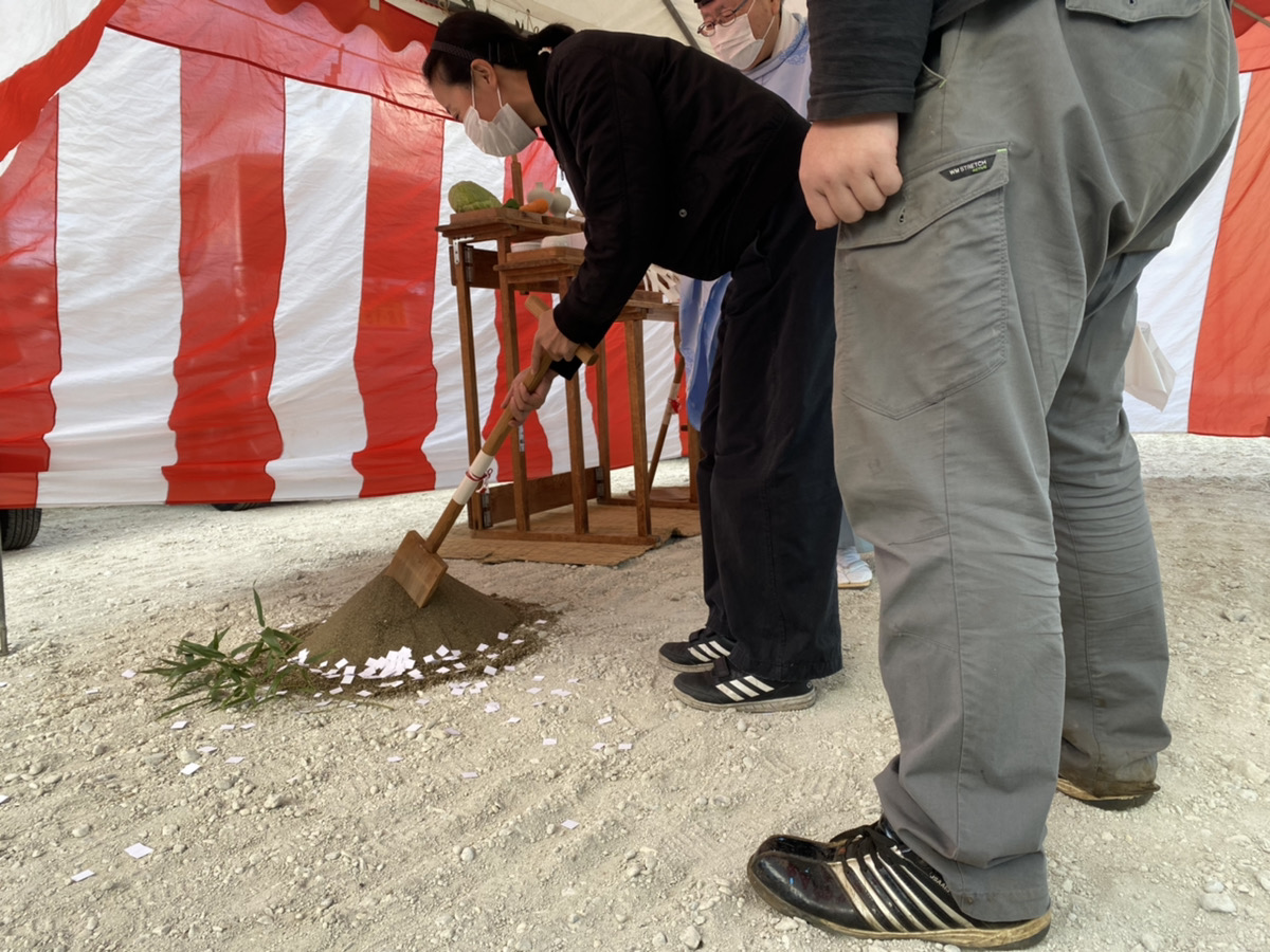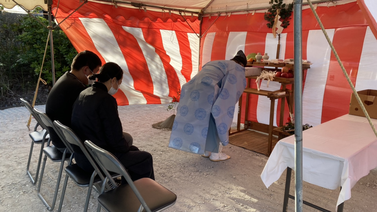 私が担当ついて初めての地鎮祭でもあり、いよいよ工事が始まるかと思うと