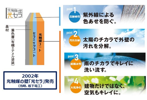 汚れを浮かせて雨で汚れを落とすという優れものの外壁材です。