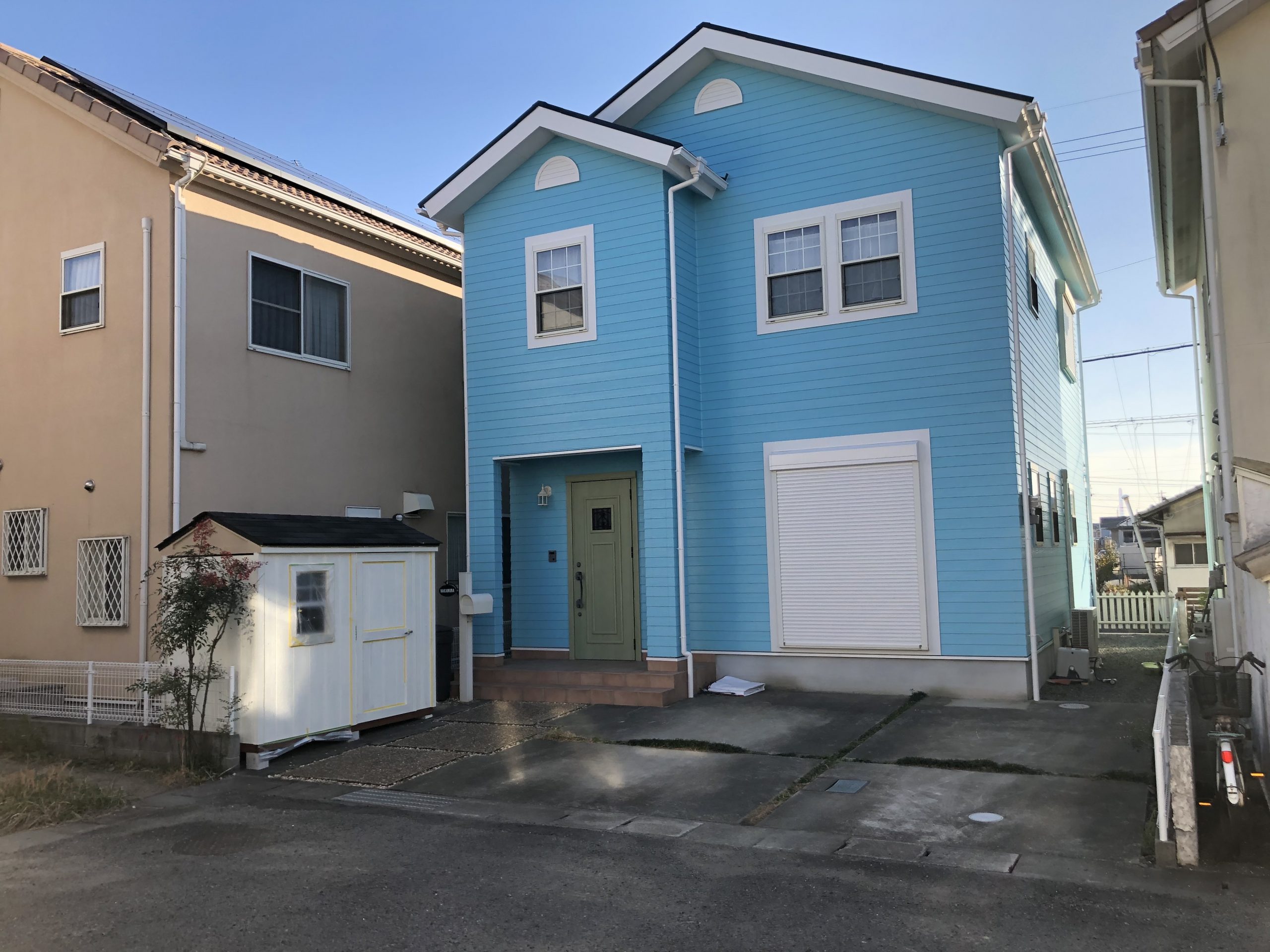 塗り替えるならと外観のイメージを大きく換えたいとの希望もあり、ガラっと色を変えアメリカンな雰囲気に