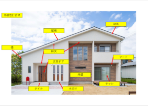 外壁の種類を決めたあとは、屋根・サッシ・玄関ドア・雨樋など、全体のバランスを見ながらカラーをコーディネートしていきます。