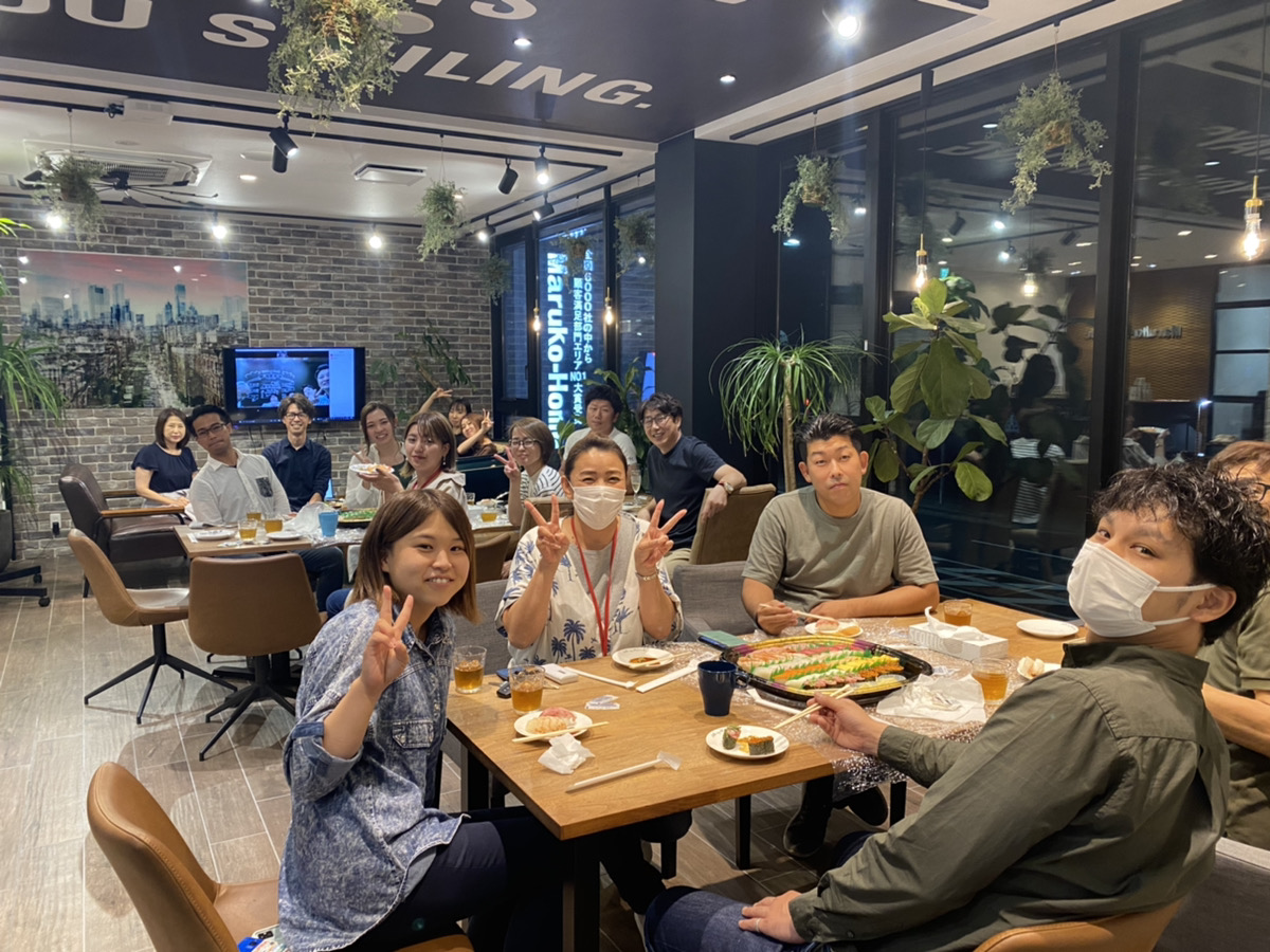 この写真は業務終了後に、社員全員でお寿司を食べた時の写真です♪