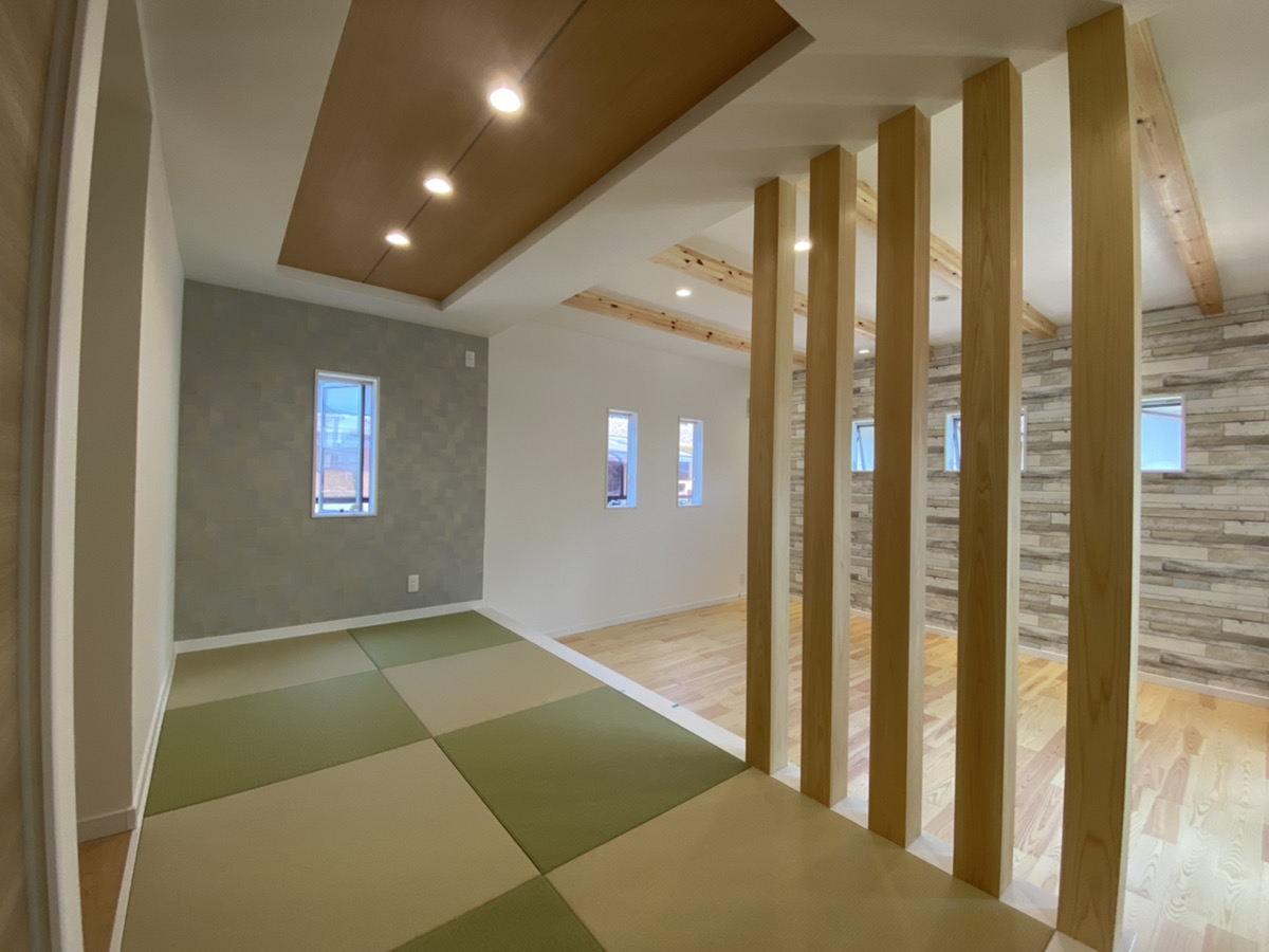 特徴としましては、段上げ和室に+化粧柱+見せ梁+無垢床と見どころ満載です☆