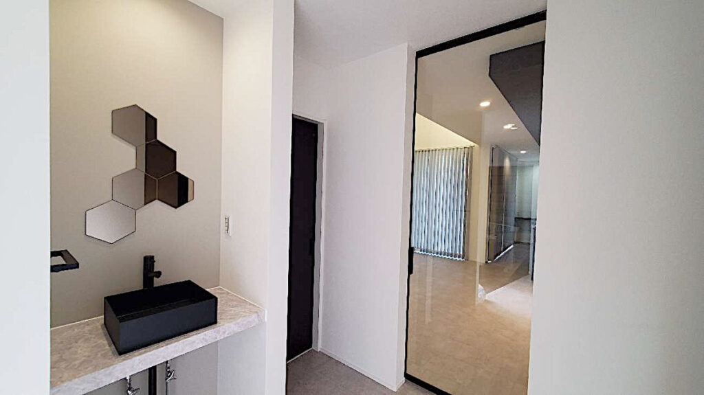 また手洗いスペースのテイストもLDKと合わせて統一感のある印象に仕上げました。