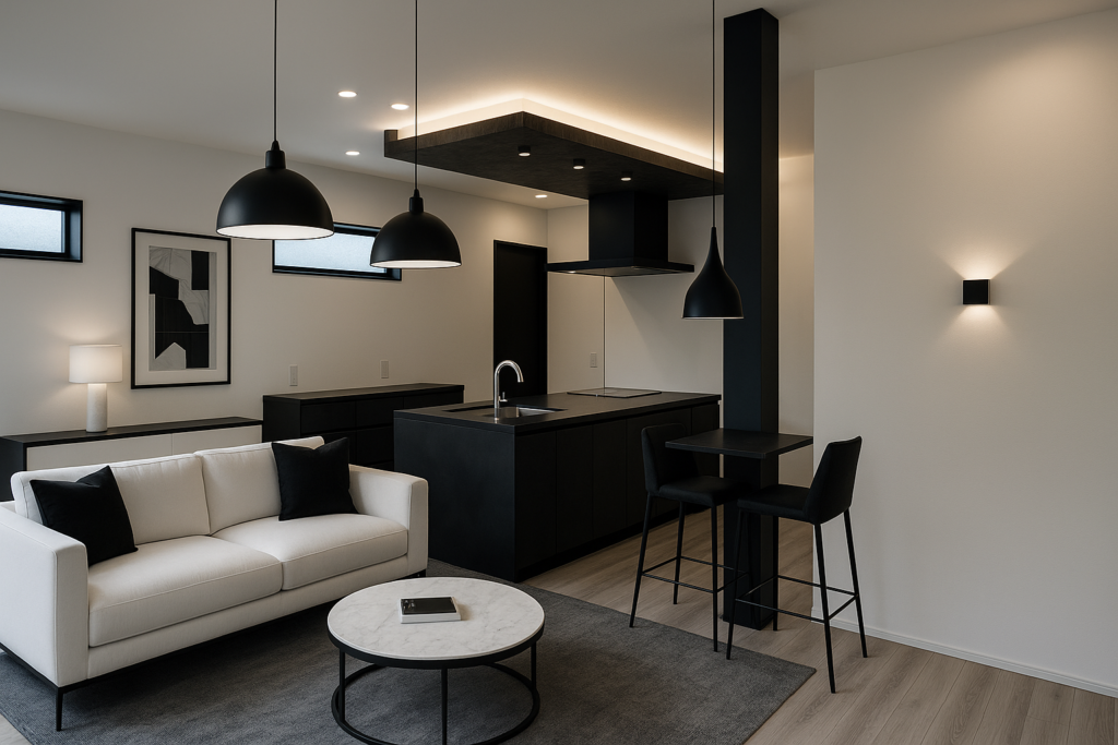 1. モノトーンで統一する 白・黒・グレーをベースにすると、空間に高級感が生まれます。