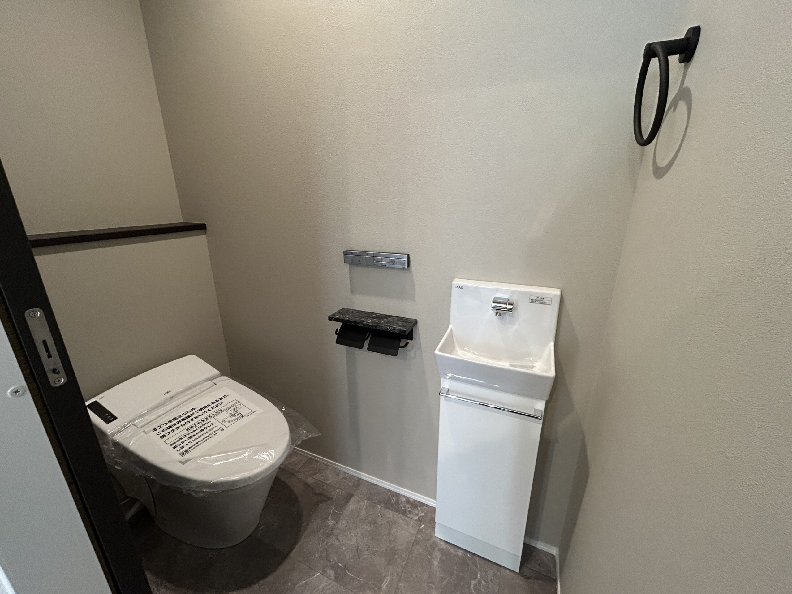 トイレには、LIXILのベーシアハーモJと手洗いキャビネットはLIXILのコフレルスリムをご採用頂いています!