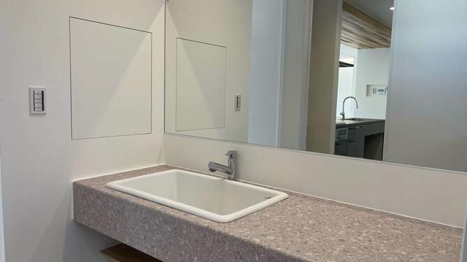 洗面化粧台は造作洗面化粧台を採用いただいております。