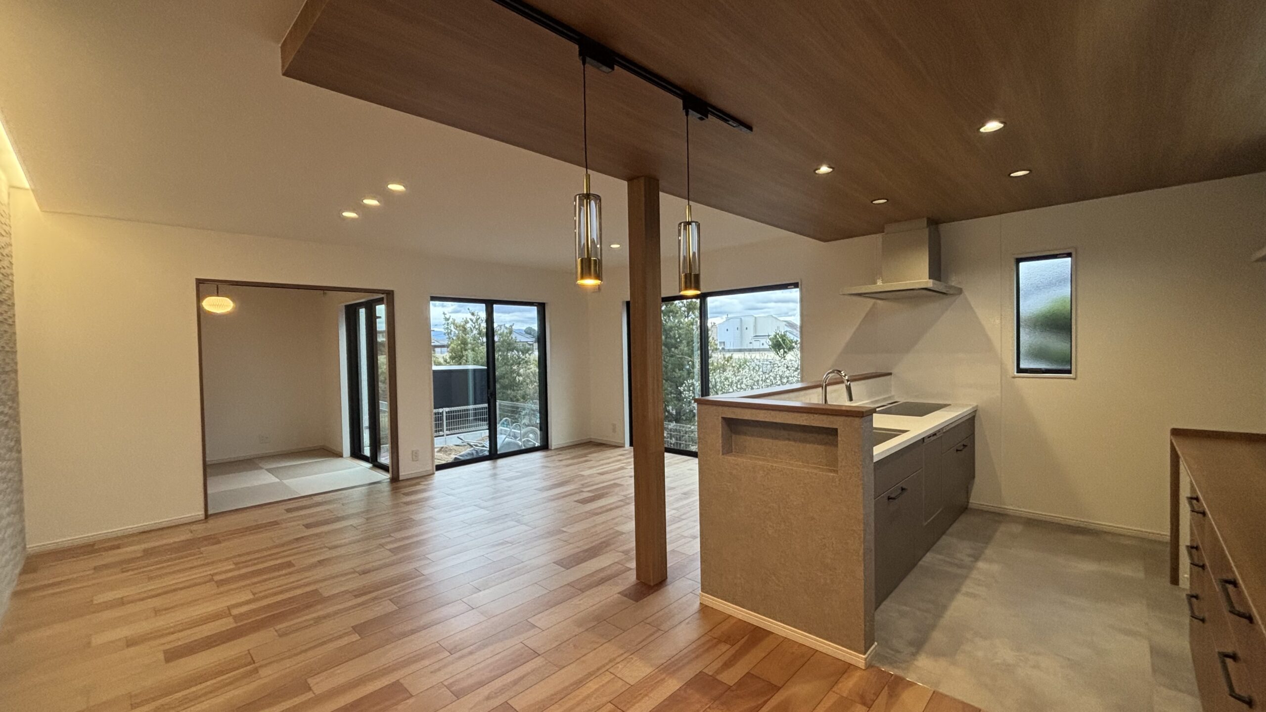 リビングの隣が和室スペースとなっておりますので、扉を開けておくとより空間を広く感じることができます。