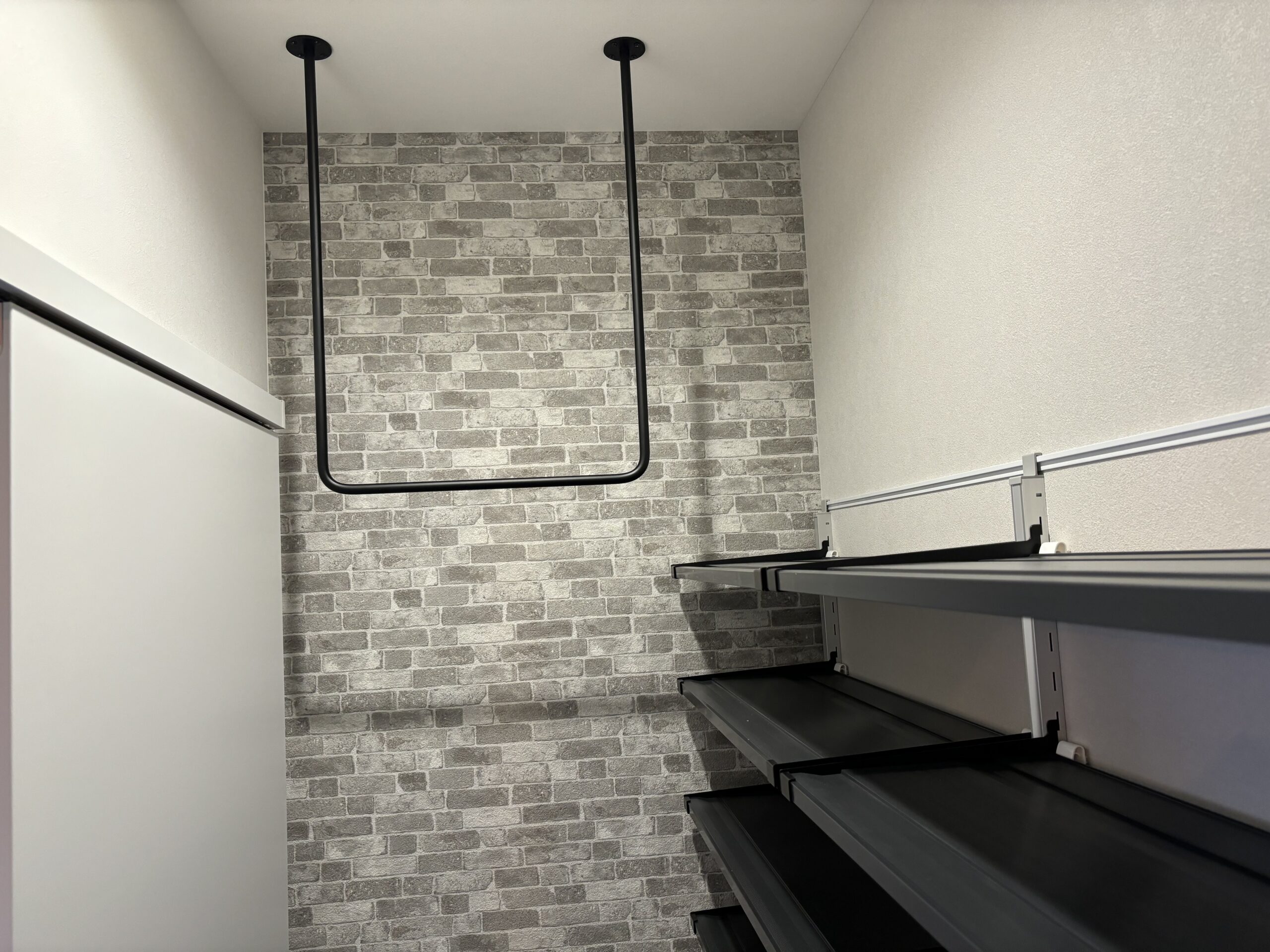 洗面、脱衣室、シューズクロークなどによく採用されているアイアン調の物干しです。