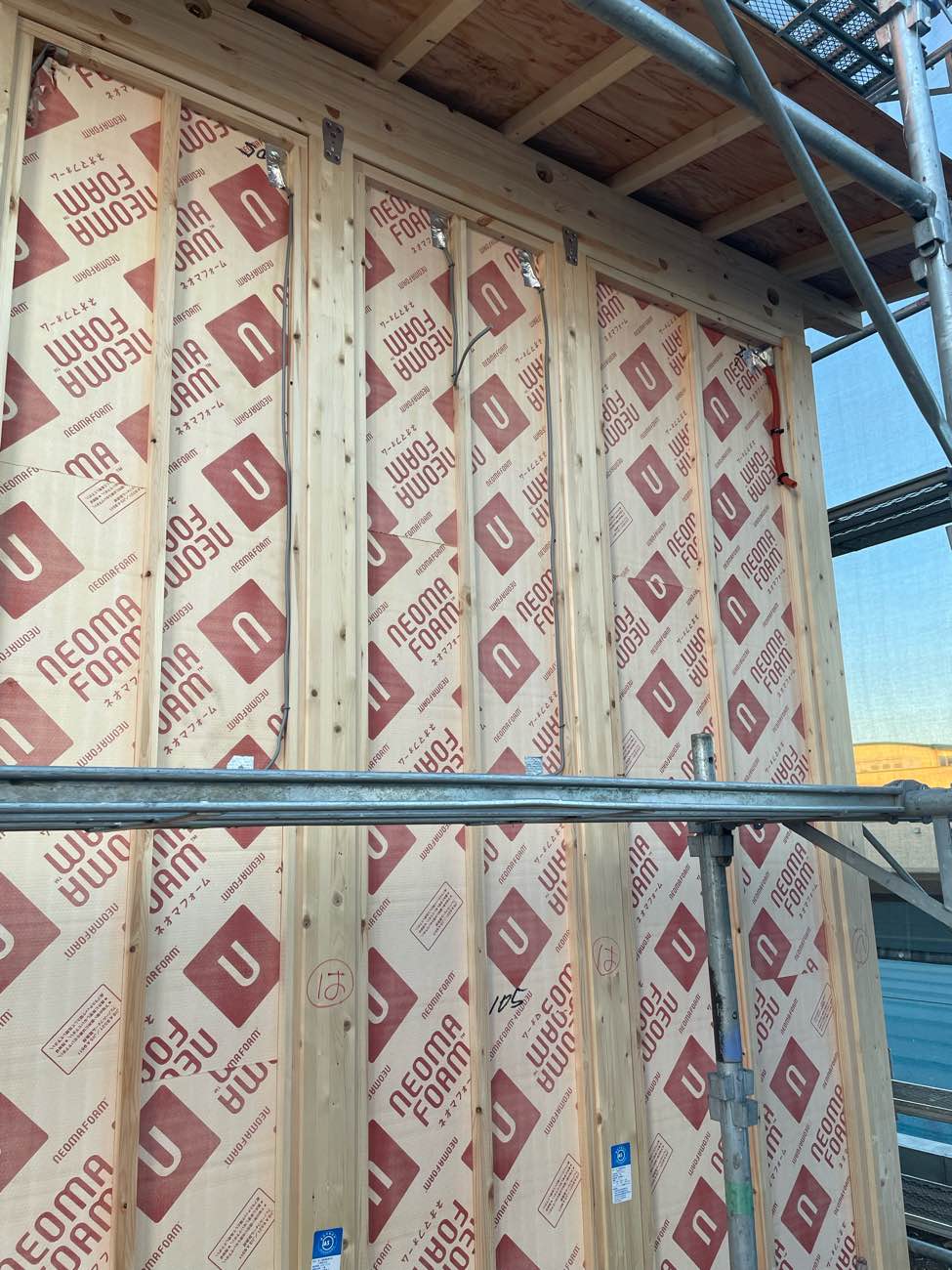 当社で採用するパネル工法では、外部廻りにパネルを設置していきます。