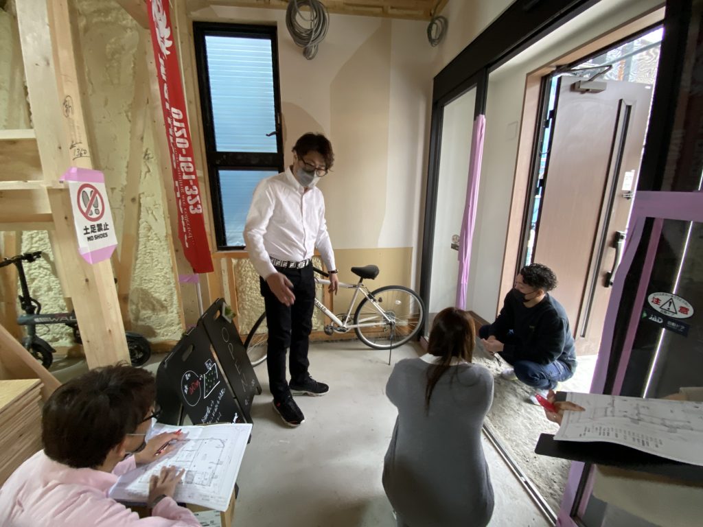 モデルオープンに向け工事も急ピッチで進んでいます。大工さんと代表含め当社スタッフ
