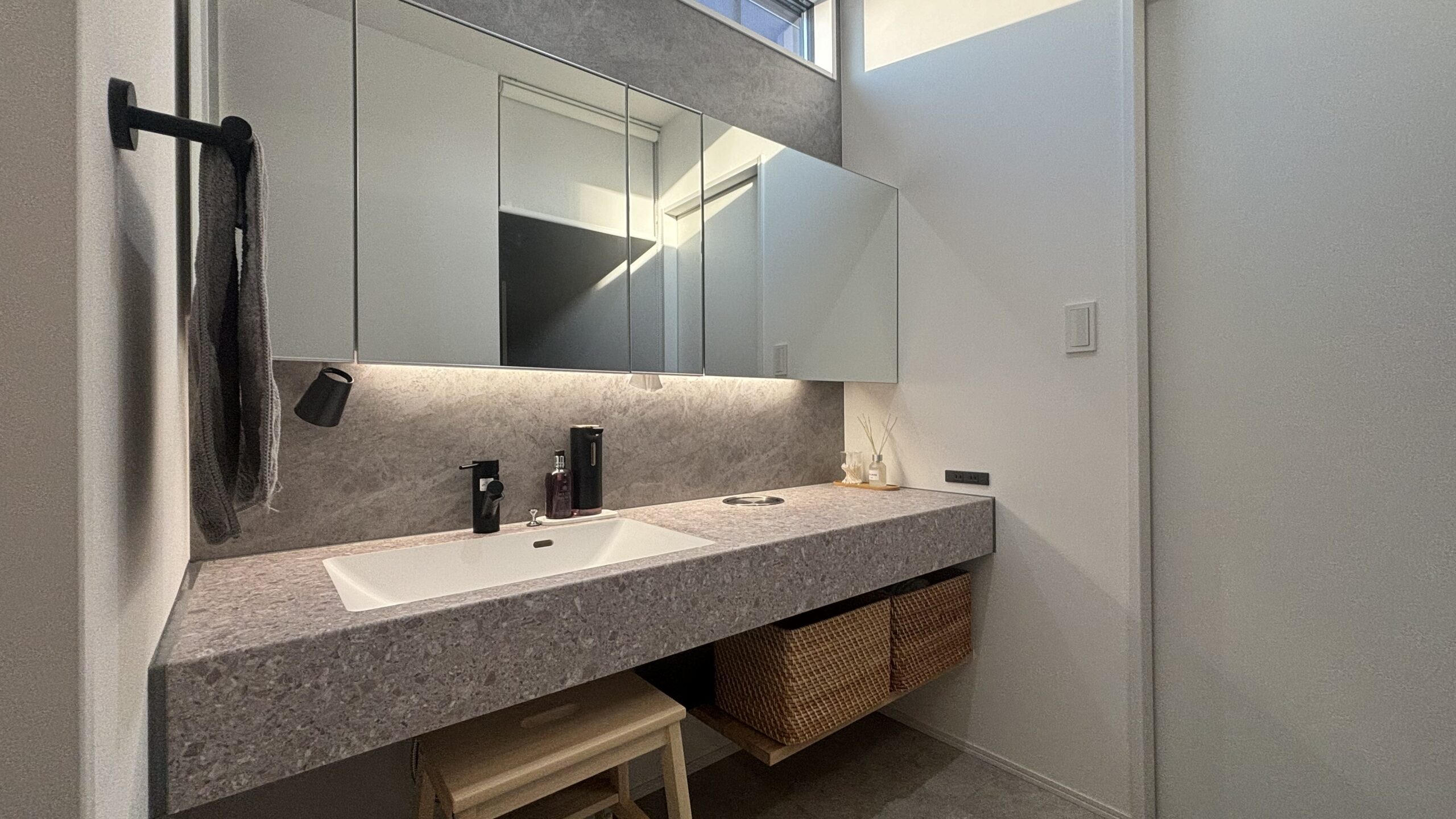 その洗面台に組み込まれた間接照明は、