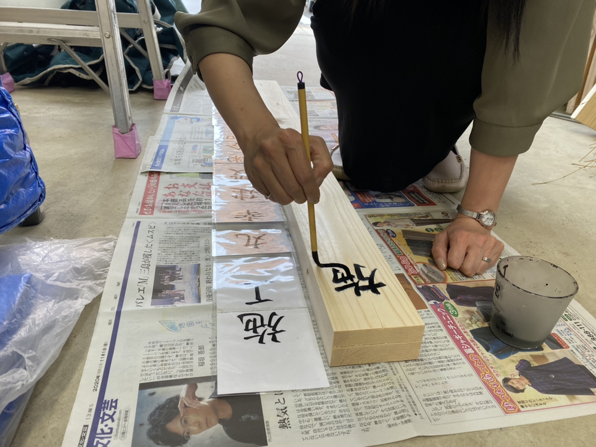 お施主様のお名前を一人一人丁寧に板に書き込んでいきます。