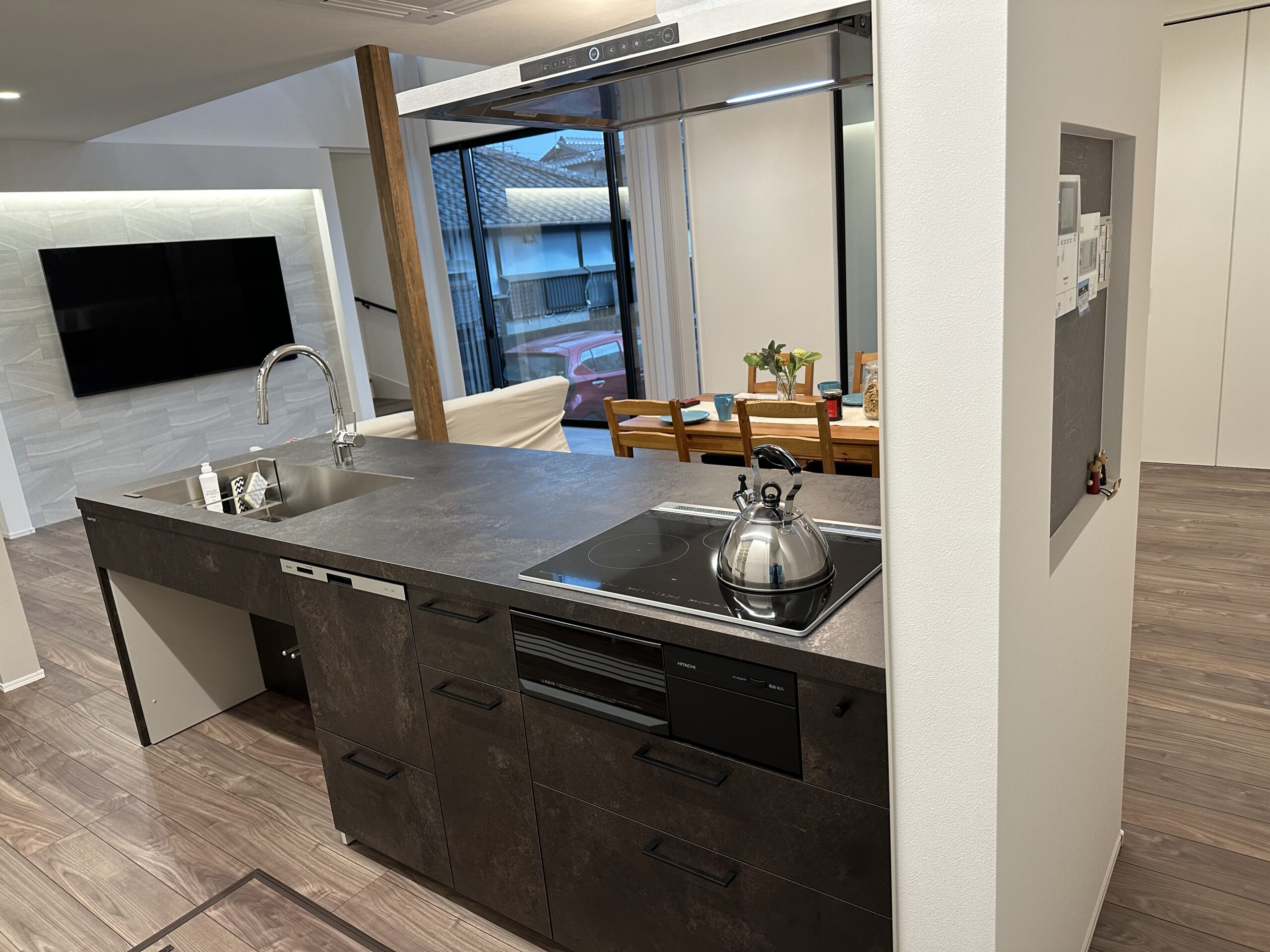 生活感がでやすいものをすべて隠してくれるので、急な来客時でもキレイなキッチン空間を実現します。