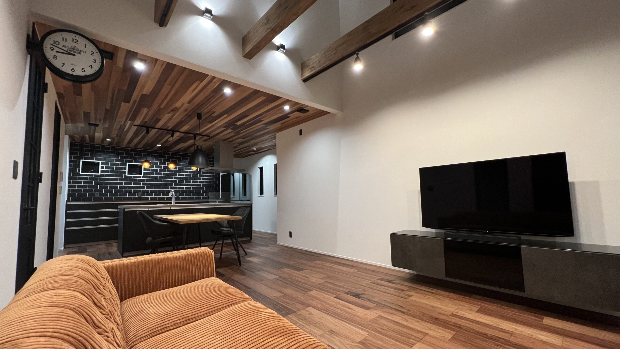 梁見せスタイルが更に空間にオシャレさをプラスしてくれています。