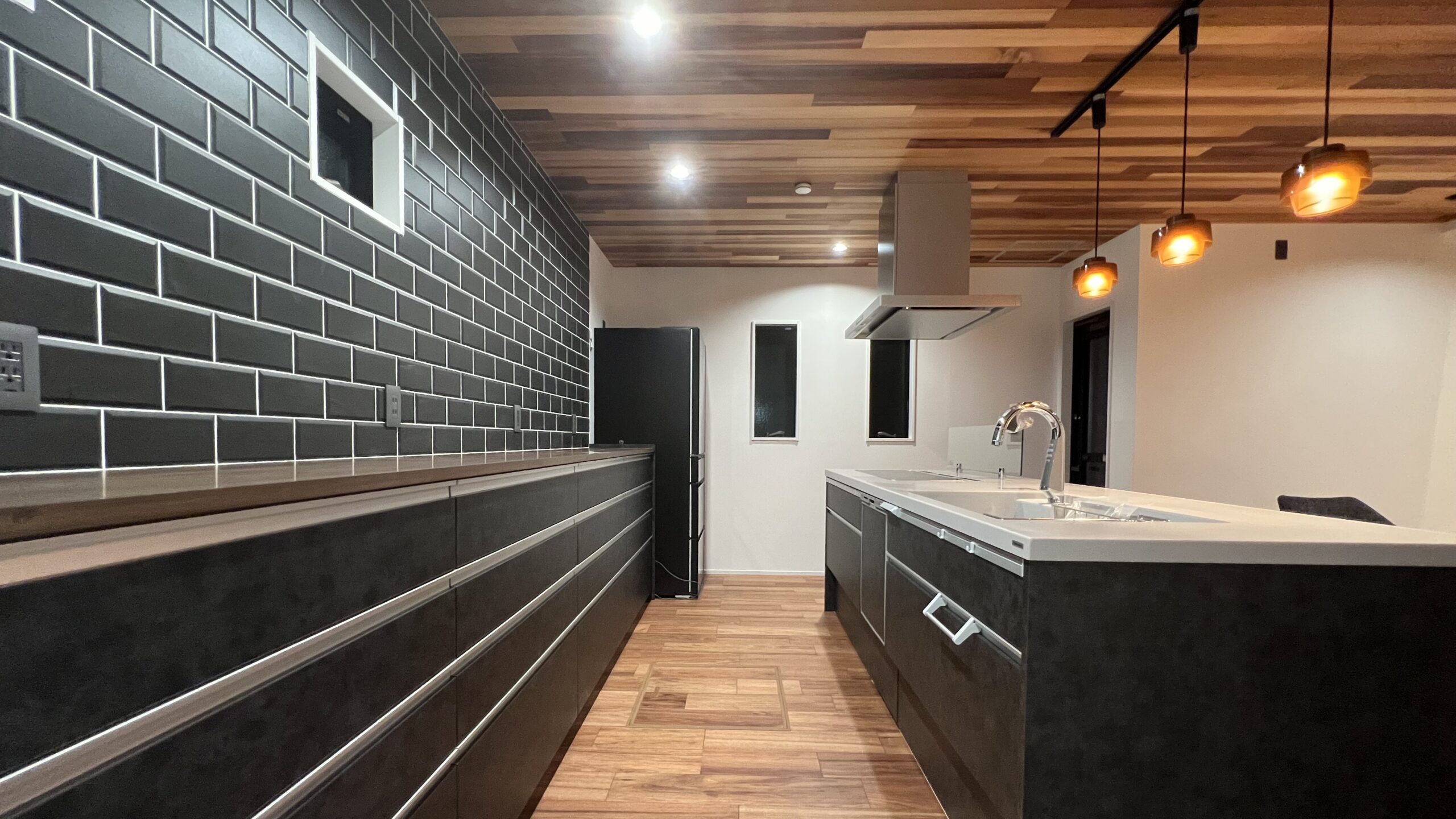 キッチンもブラック系でカッコよくまとめられています。