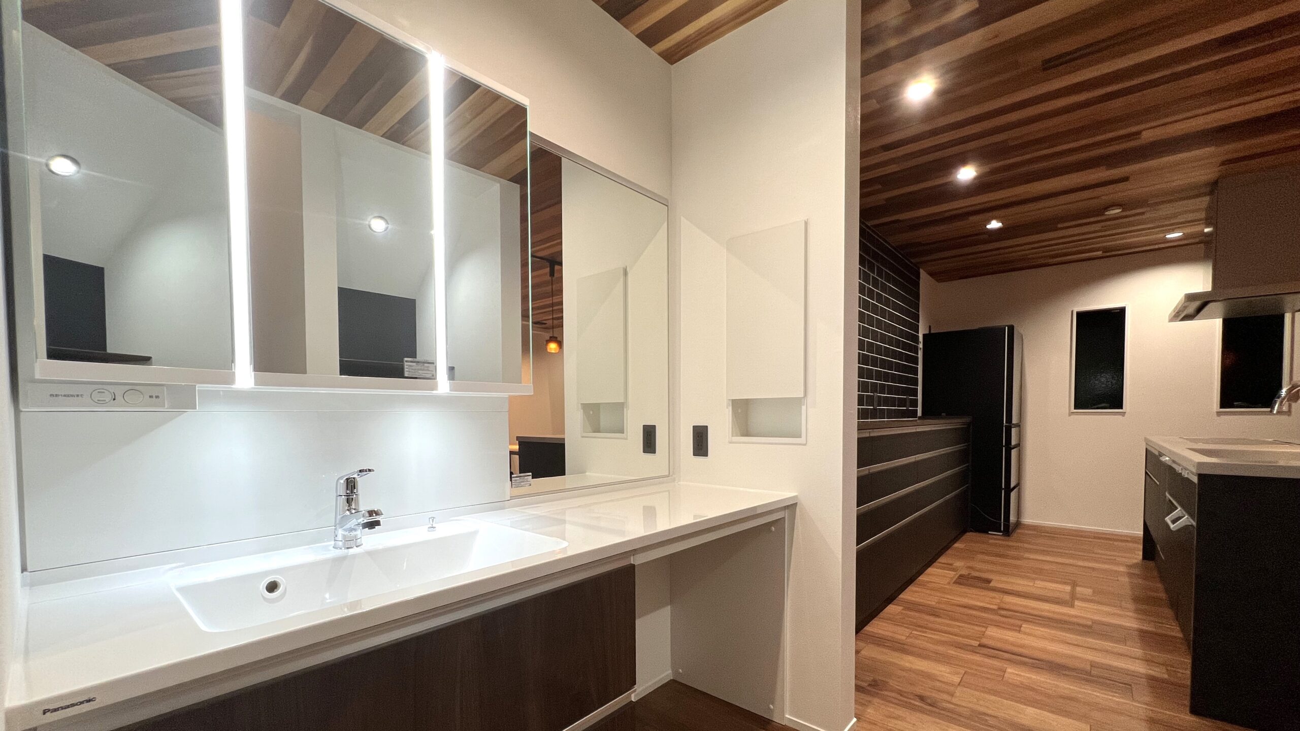 キッチンの横には洗面台を設置しています。