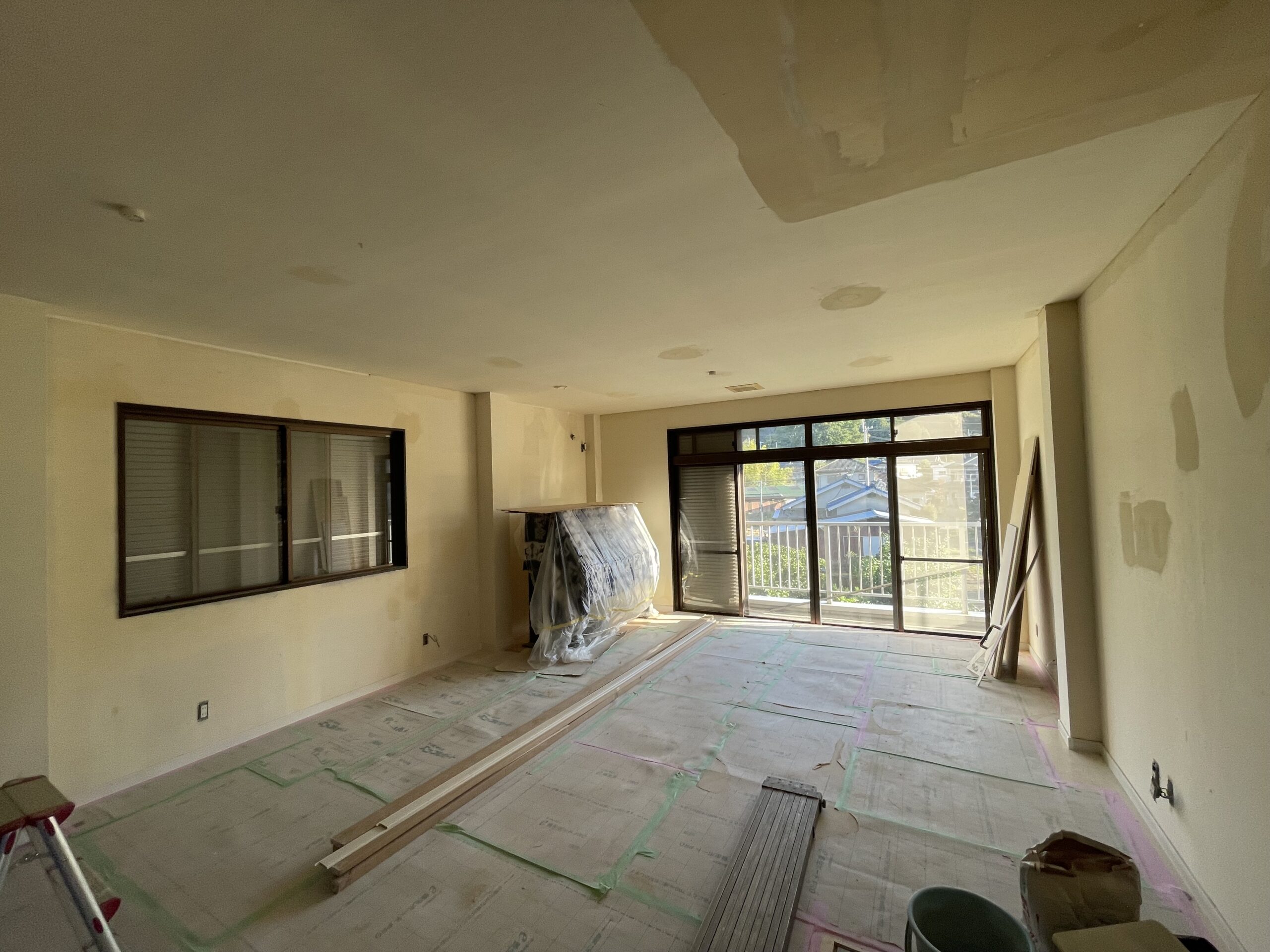 元々あった壁や天井をほぼ解体し、スケルトンの状態から新たに間取りの変更を行い新たに天井や壁の造作を行いました。