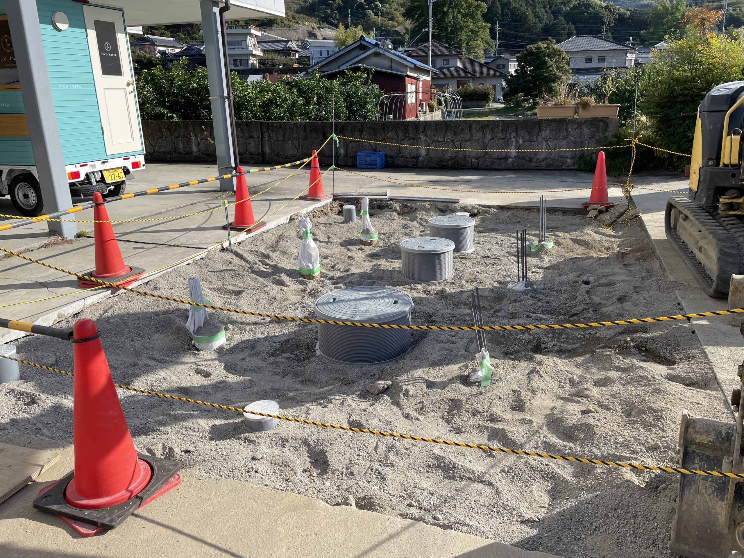 浄化槽の工事ももうすぐ終わり、後は駐車スペースに車椅子マークの表示工事を行う予定です。